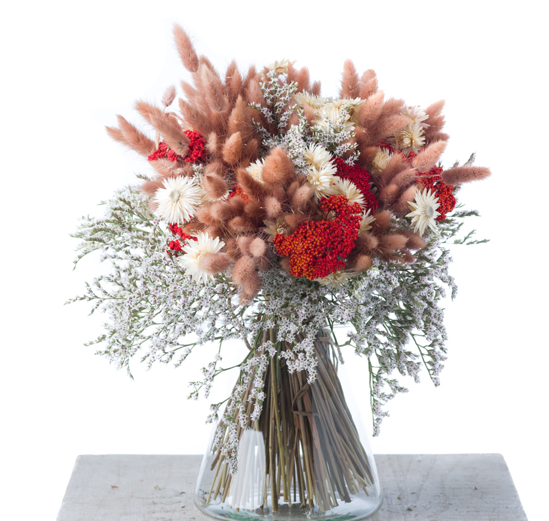Completely made with selected flowers dried through natural techniques, this bouquet has a very long duration and does not require any care.