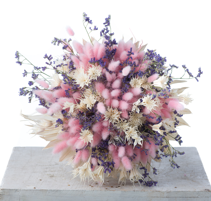 Completamente realizzato con selezionati fiori essiccati attraverso tecniche naturali, questo bouquet ha una durata lunghissima e non richiede alcuna cura.